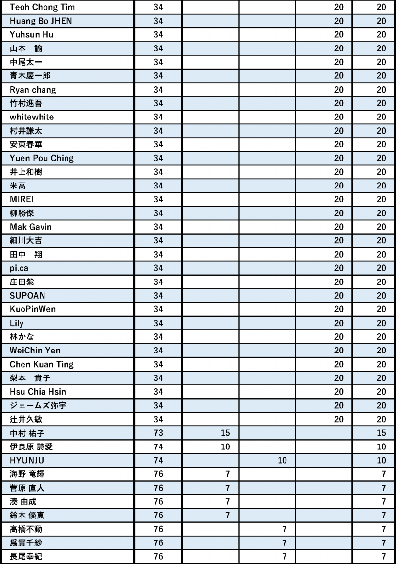 今回反映している大会は、下記大会となります。